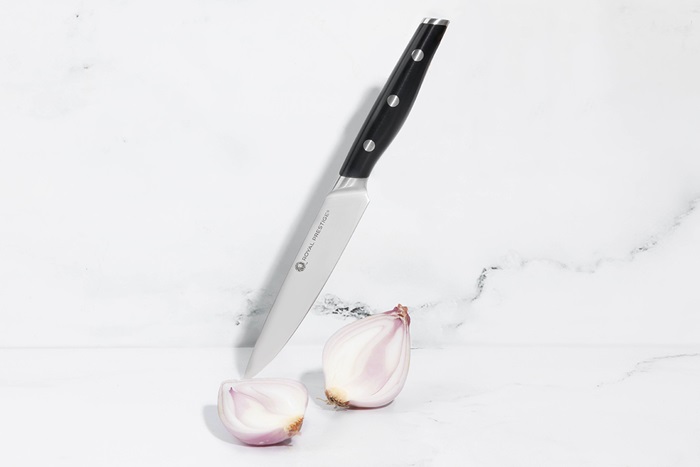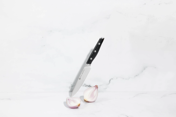 El Royal Prestige® Utility Knife es una versión más pequeña del famoso Royal Prestige® Chef’s Knife. Te ayudará a cortar y picar los ingredientes más pequeños con mayor facilidad para preparar tus recetas favoritas. Su versatilidad no tiene igual y su mango favorece un agarre profesional de manera más cómoda, lo que reduce la fatiga al usarlo por mucho tiempo. Sin duda este se volverá tu cuchillo favorito para el uso diario en la cocina.