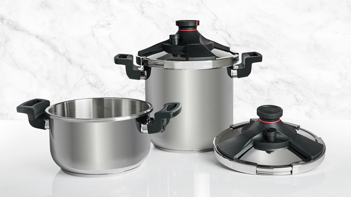Cuatro sistemas de seguridad: Cierre de seguridad, pin indicador de presión, válvula de seguridad y ventana de liberación de presión. Diseñados para resguardar tu experiencia en la cocina.