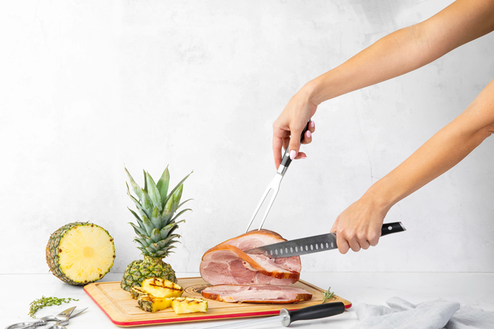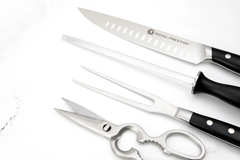 O Royal Prestige® Carving Knife Set inclui as facas que todo amante de carne deseja. O conjunto completo é ideal para aquele churrasco com a família e os amigos. Tenha tudo o que precisa à sua disposição para agradar a todos com um corte imbatível, com facas que possuem um cabo que permite uma pegada mais confortável e profissional, um excelente fio e acessórios que serão seus aliados, como o Royal Prestige® Sharpening Steel e a Royal Prestige® Kitchen Shears que facilitará suas tarefa.