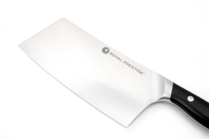 El Royal Prestige® Cleaver es el cuchillo más grande para cortar y picar alimentos. Su hoja es más ancha y pesada y te facilitará cualquier corte. Su renovado mango disminuye la fatiga y tiene el balance perfecto para que puedas controlarlo como los profesionales. Además, cuenta con un filo de fábrica sin igual.