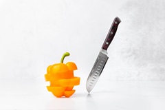 Obtén cortes más precisos gracias a su borde afilado fabricado con “súper acero”, que mantiene el filo por más tiempo. Este borde está protegido con 32 capas internas de acero inoxidable en cada lado. Pieza de lujo para quienes desean lograr cortes más precisos. La cuchilla se extiende hasta el mango, para evitar que se rompa o desprenda. El mango ergonómico de resina te facilita sujetarlos de manera cómoda y firme. Parte de la extraordinaria línea Precision Series III™ de Royal Prestige®.
