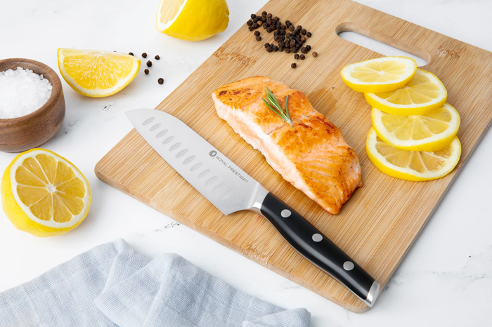 ¡El Royal Prestige® Santoku Knife 5" será tu mejor aliado en la cocina! Es un cuchillo originado en Japón con la calidad de acero de grado alemán que es ideal para cortar en rodajas, cubos y más. Cuentan con muescas en la cuchilla para evitar que se peguen los ingredientes, facilitando el corte rápido con un mango rediseñado que favorece un agarre profesional y reduce la fatiga. En pocas palabras, lo mejor de lo mejor en un tamaño perfecto de 5".
